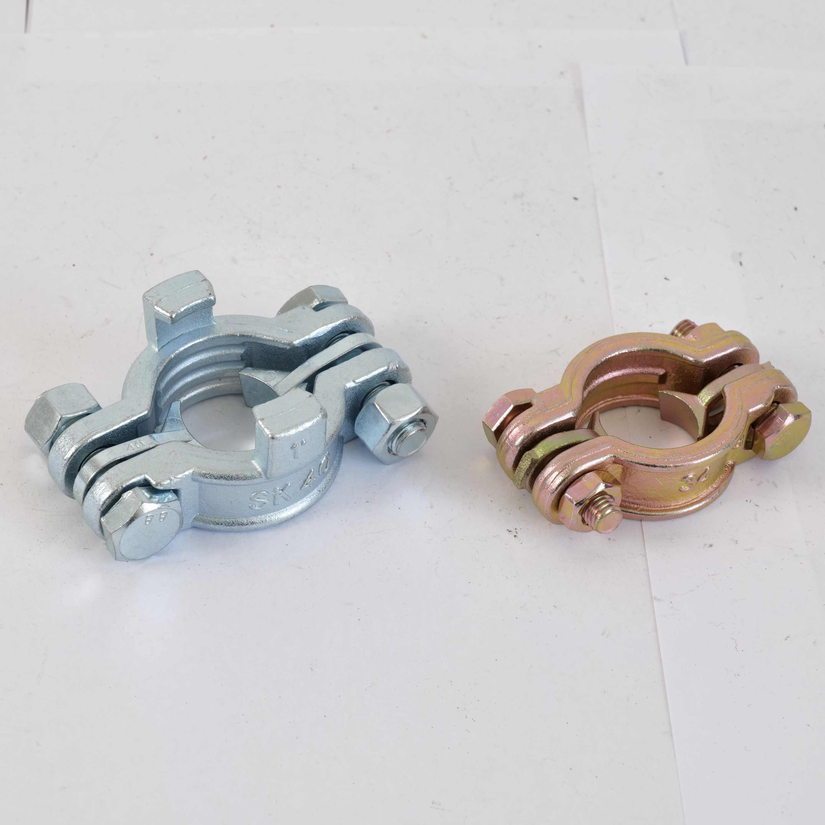 ที่ วัสดุของแคลมป์โบลต์คู่คือคาร์บอน เหล็กและวัสดุทองเหลืองและสแตนเลสก็มีเทคโนโลยีเช่นกัน การหล่อที่แม่นยำพื้นผิวเป็นสีเงินหรือสีเหลืองชุบ Zn