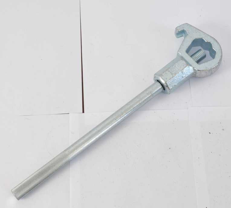 ปรับ ประแจหัวจ่ายน้ำ: ด้ามจับเหล็ก หล่อ หัวเหล็ก. 1 1/4” ช่องเปิดสูงสุดรูปห้าเหลี่ยม สำหรับพินหรือตัวดึงจนถึง 3”
